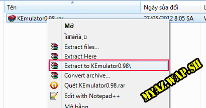 - Chọn vào tệp cần giải nén => nhấn chuột phải chọn Extract to..(tên file)( KEmulator là "Extract to KEmulator 0.9.8")