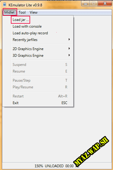 + Sau đó vào menu "Midlet" chọn "Load jar"