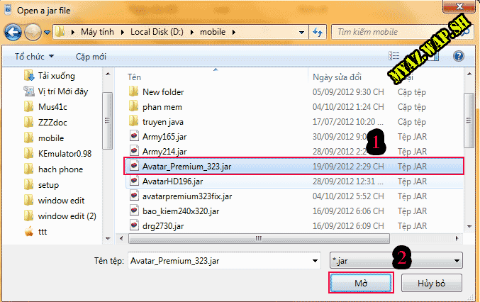Rồi chọn file Java (game hoặc phần mềm đã tải về)