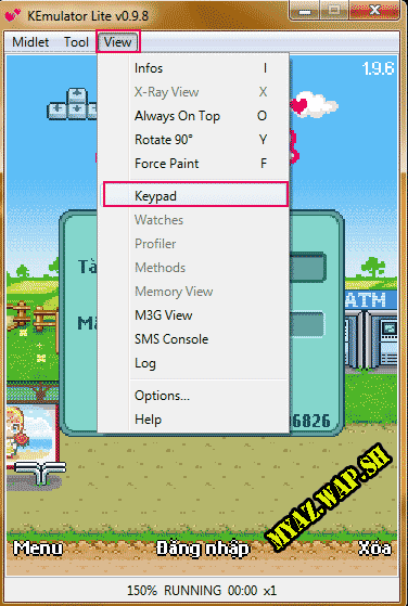 - Vào menu "View", chọn "Keypad" để xuất hiện bàn phím điều khiển.